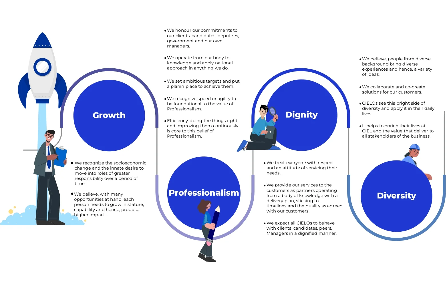 At CIEL, we invest in understanding the context of the client, the organization’s structure, the role to be filled and its context. This understanding is captured in a document and forms the basis of the next few steps in the search process, followed by the premier staffing companies in India.